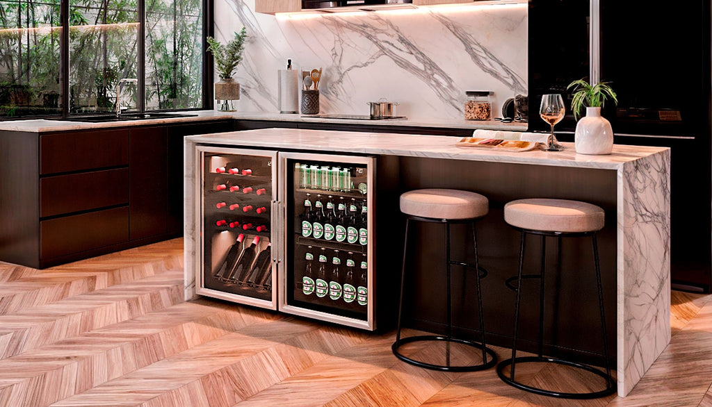 - Adega e cervejeira contam com porta de vidro duplo e duplo sistema de aquecimento evitando a sudação da porta.