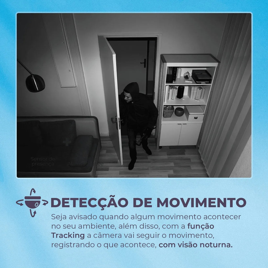 - DETECÇÃO INTELIGENTE DE MOVIMENTO E SOM Receba alertas automáticos no seu smartphone sempre que houver movimentação ou ruídos suspeitos no ambiente.