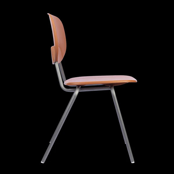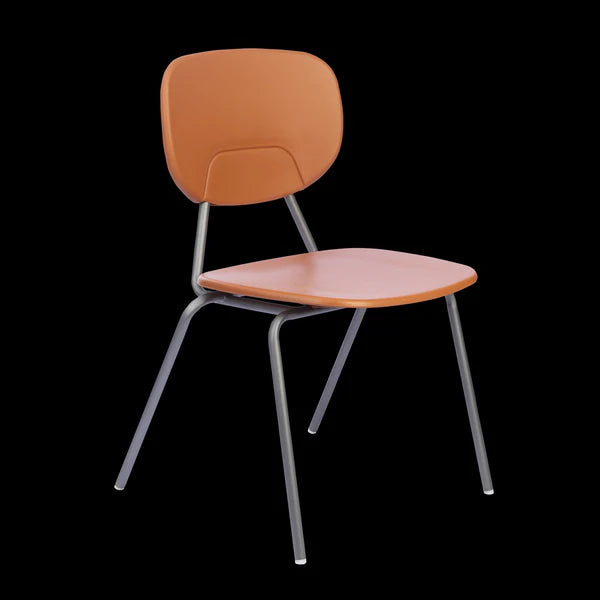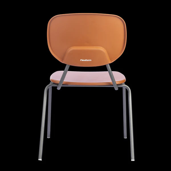 Estrutura do encosto cromada, encosto terracota, assento terracota e base cromada.Montagem