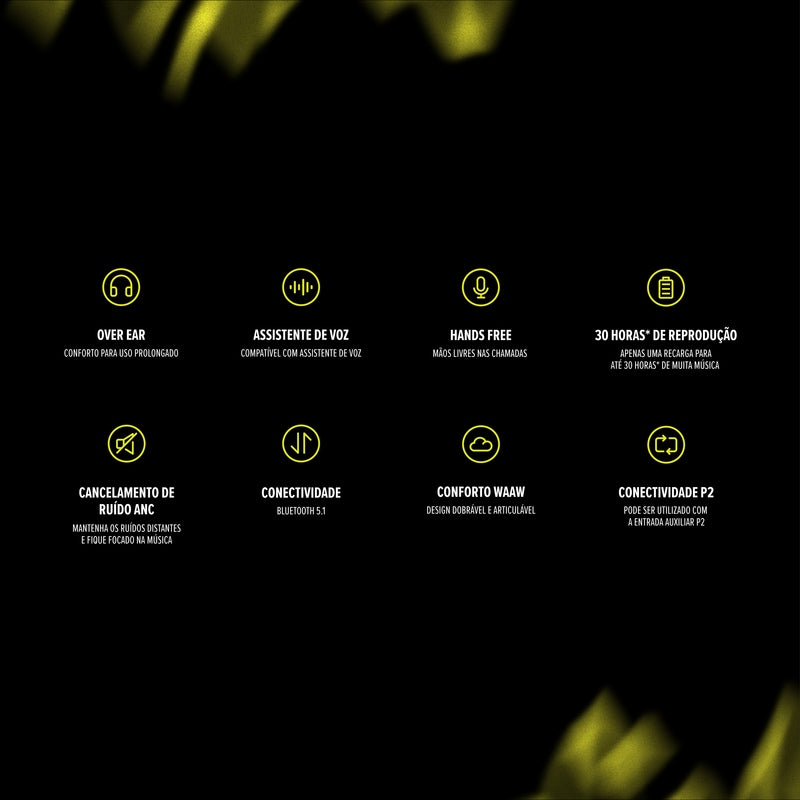 Compatível com acionamento do assistente de voz do seu celular, tablet ou notebook, o WAAW SENSE 310 possui estrutura dobrável e articulável, ideal para viagens ou nas tarefas do dia a dia. Além disso, a entrada auxiliar P2 de 1,2m garante play infinito, mesmo sem bateria.